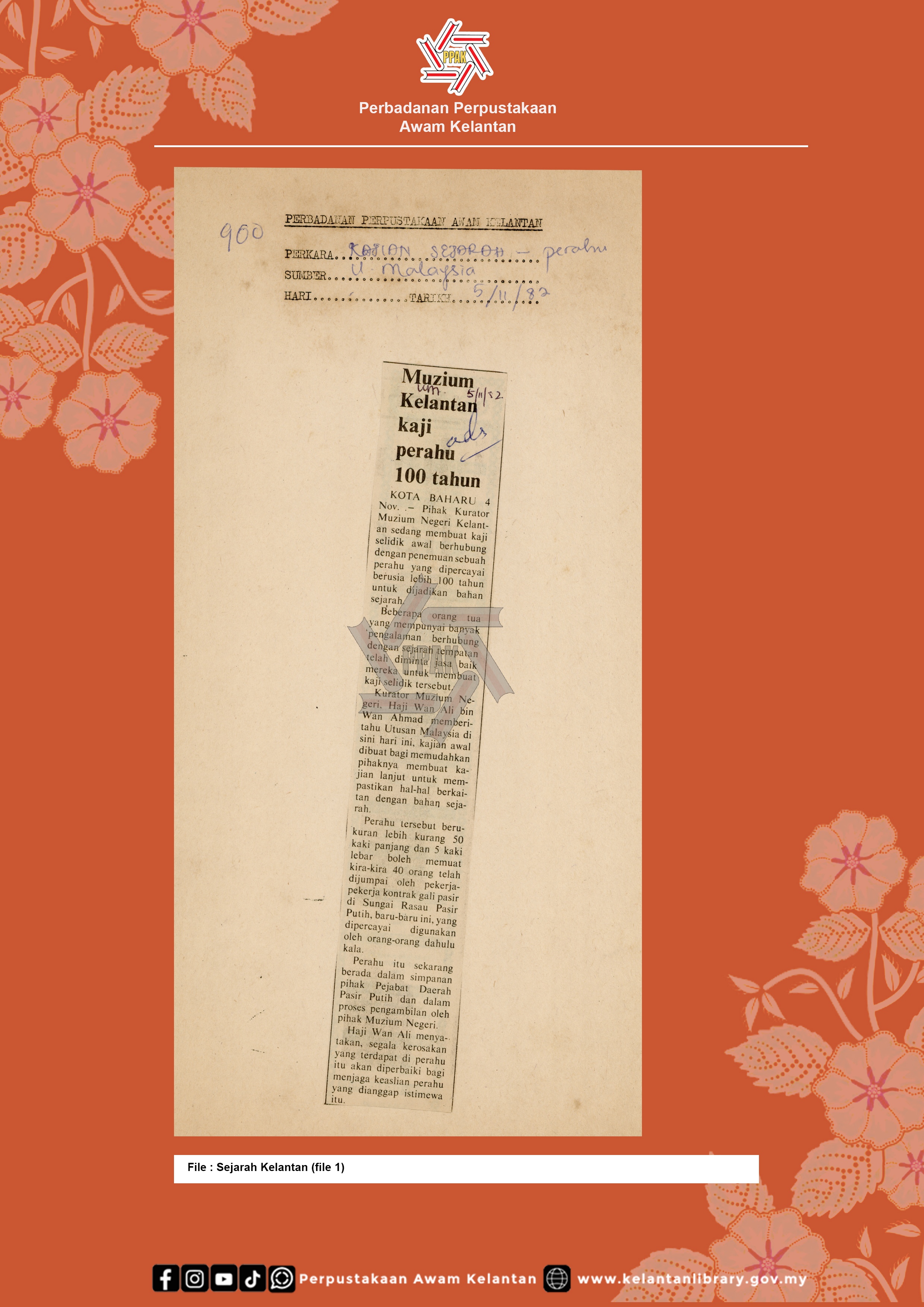 | MUZIUM KELANTAN KAJI PERAHU 100 TAHUN |