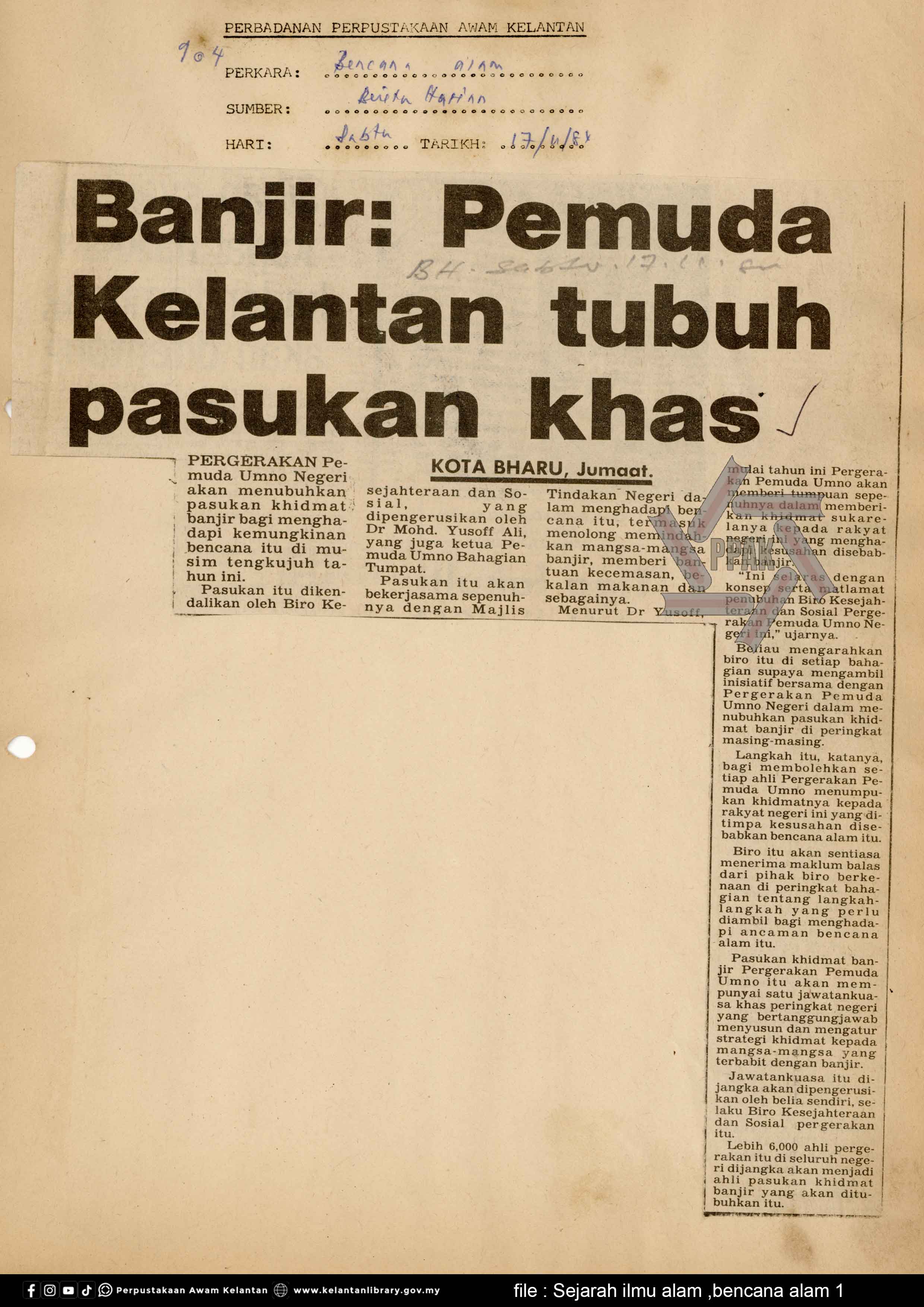 | BENCANA ALAM : Banjir pemuda kelantan tubuh pasukan khas |