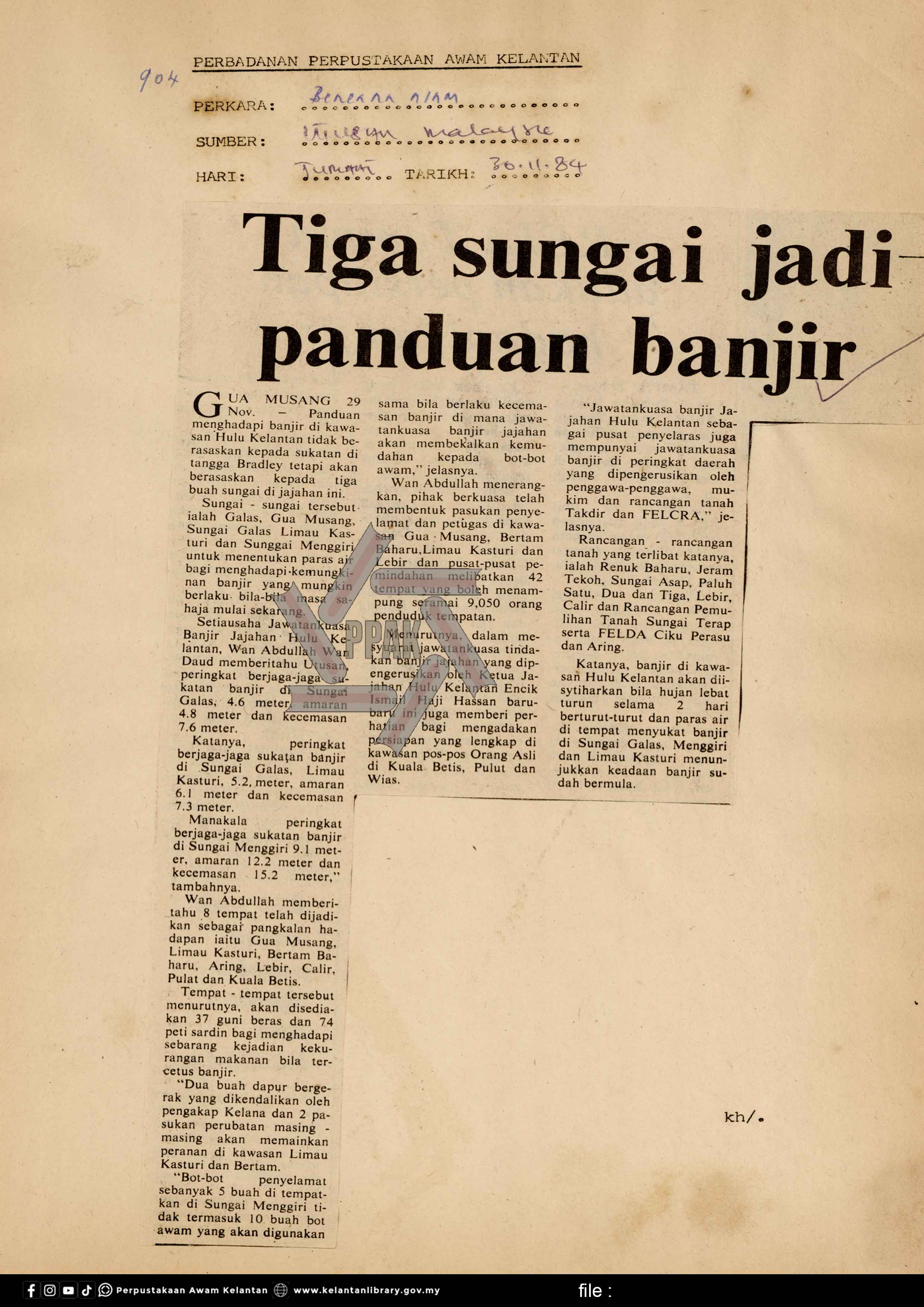 | BENCANA ALAM : Tiga sungai jadi panduan banjir |
