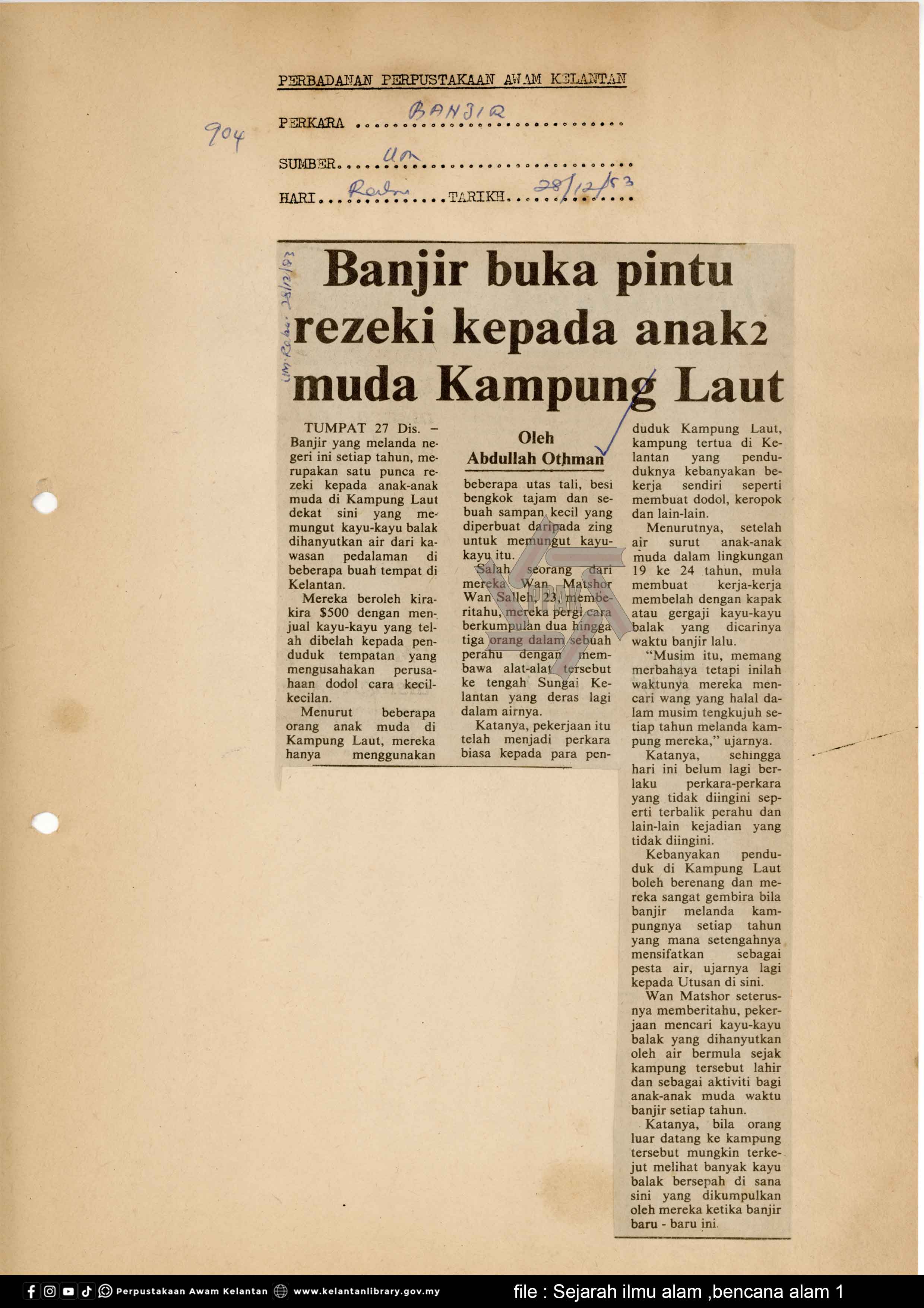 | BENCANA ALAM : Banjir buka pintu rezeki kepada anak-anak muda kampung laut |