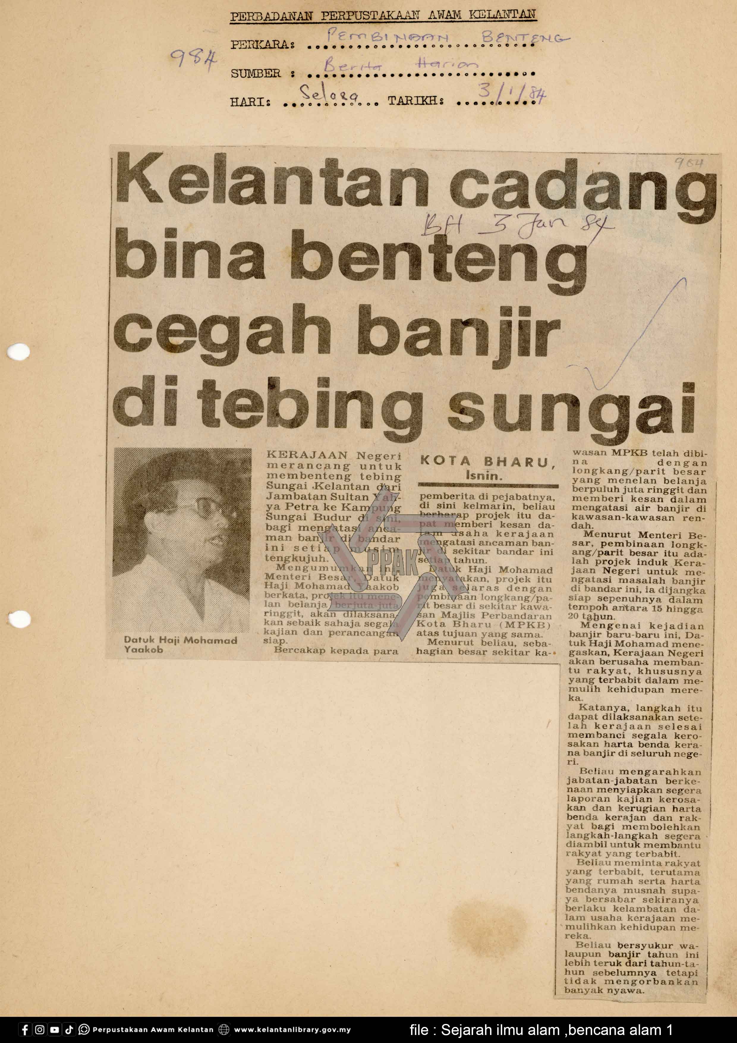 | BENCANA ALAM : Kelantan cadang bina benteng cegah banjir di tebing sungai |