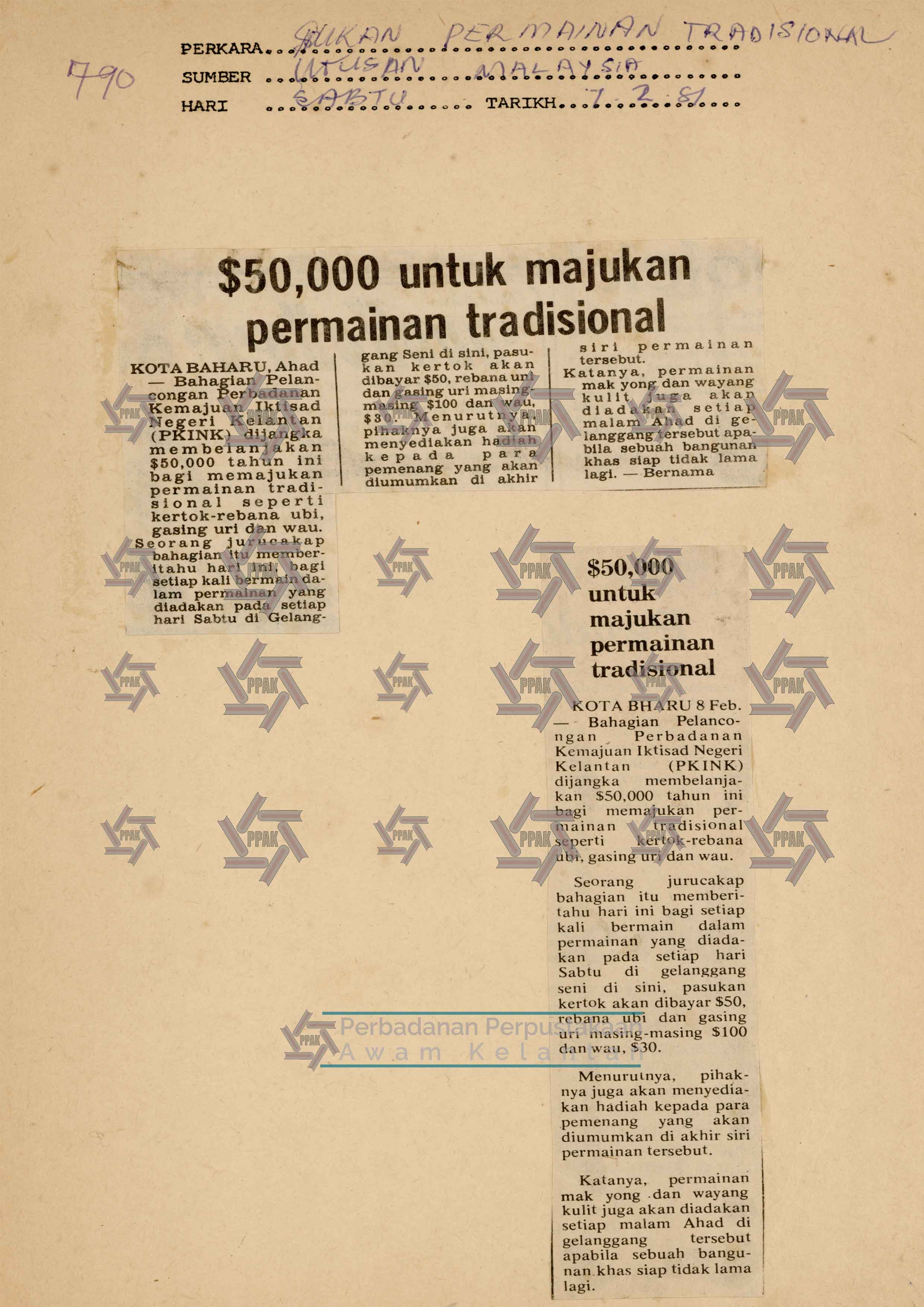 | KESENIAN,PERMAINAN TRADISIONAL : $50,000 untuk majukan permainan tradisional |