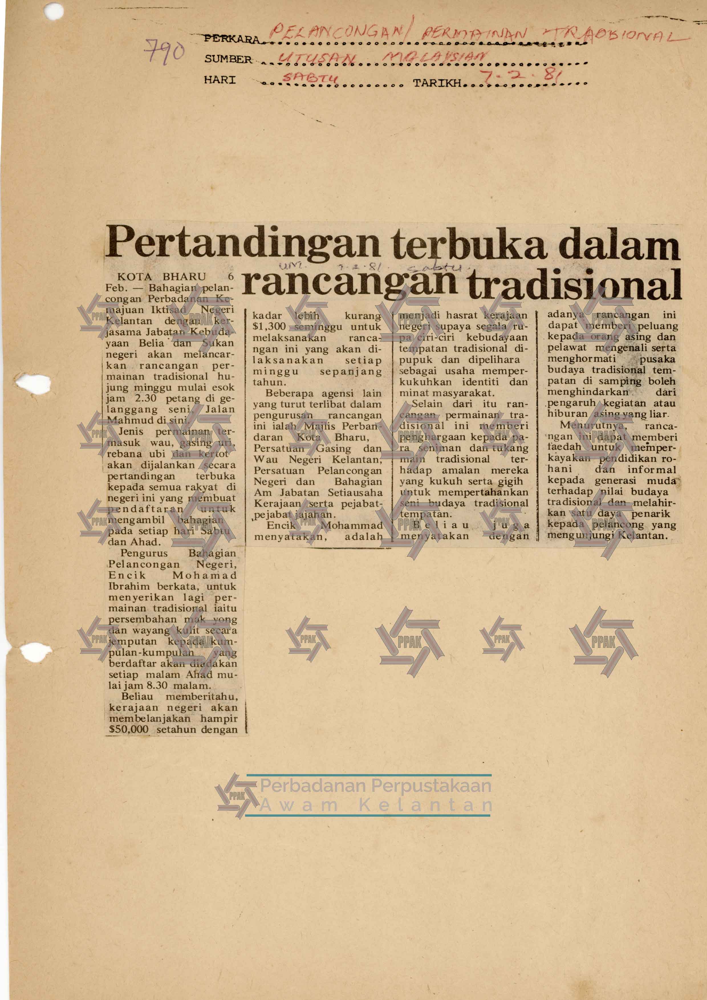 | KESENIAN,PERMAINAN TRADISIONAL : Pertandingan terbuka dalam rancangan tradisional |