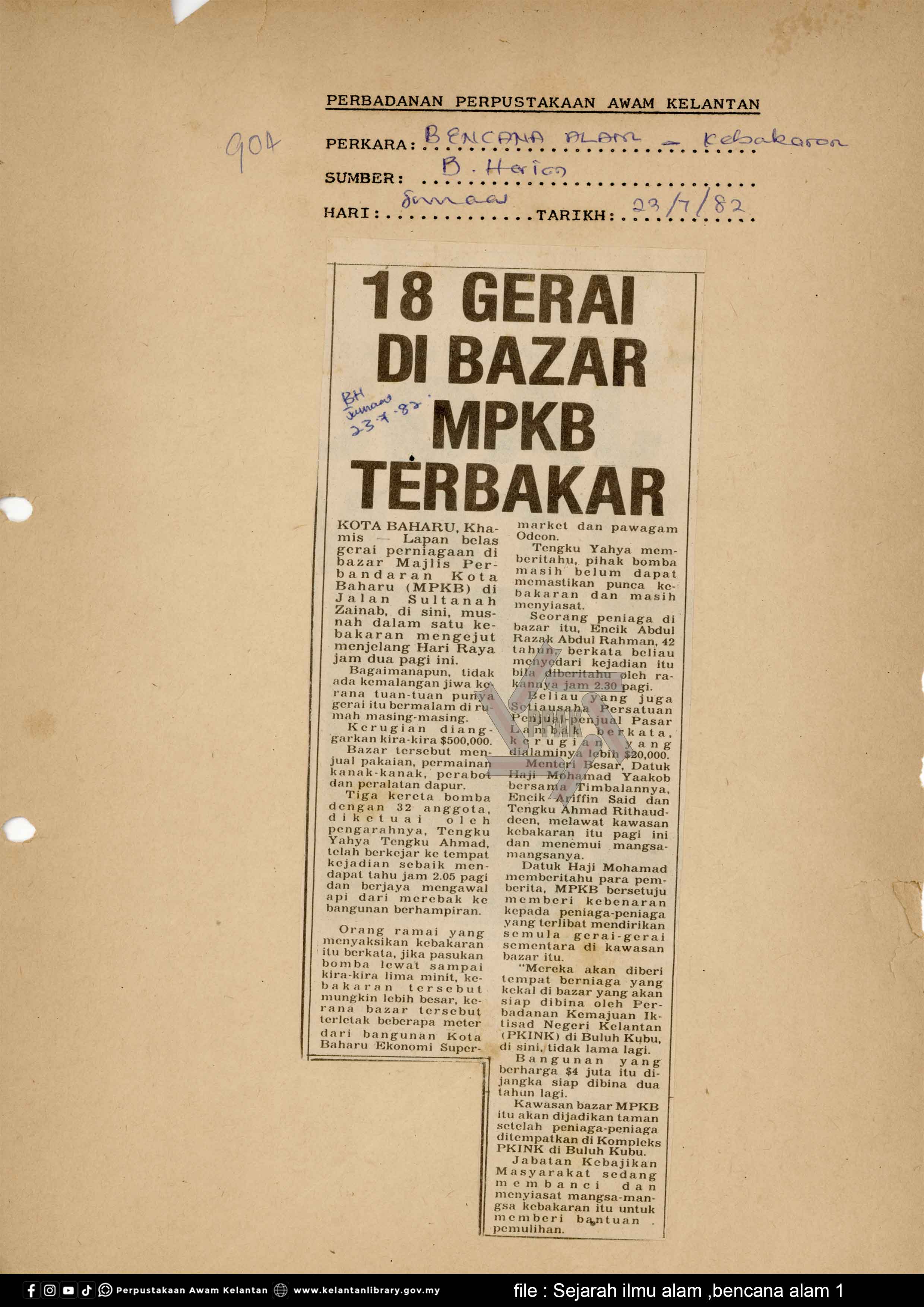 | BENCANA ALAM : 18 Gerai di bazar mpkb terbakar |