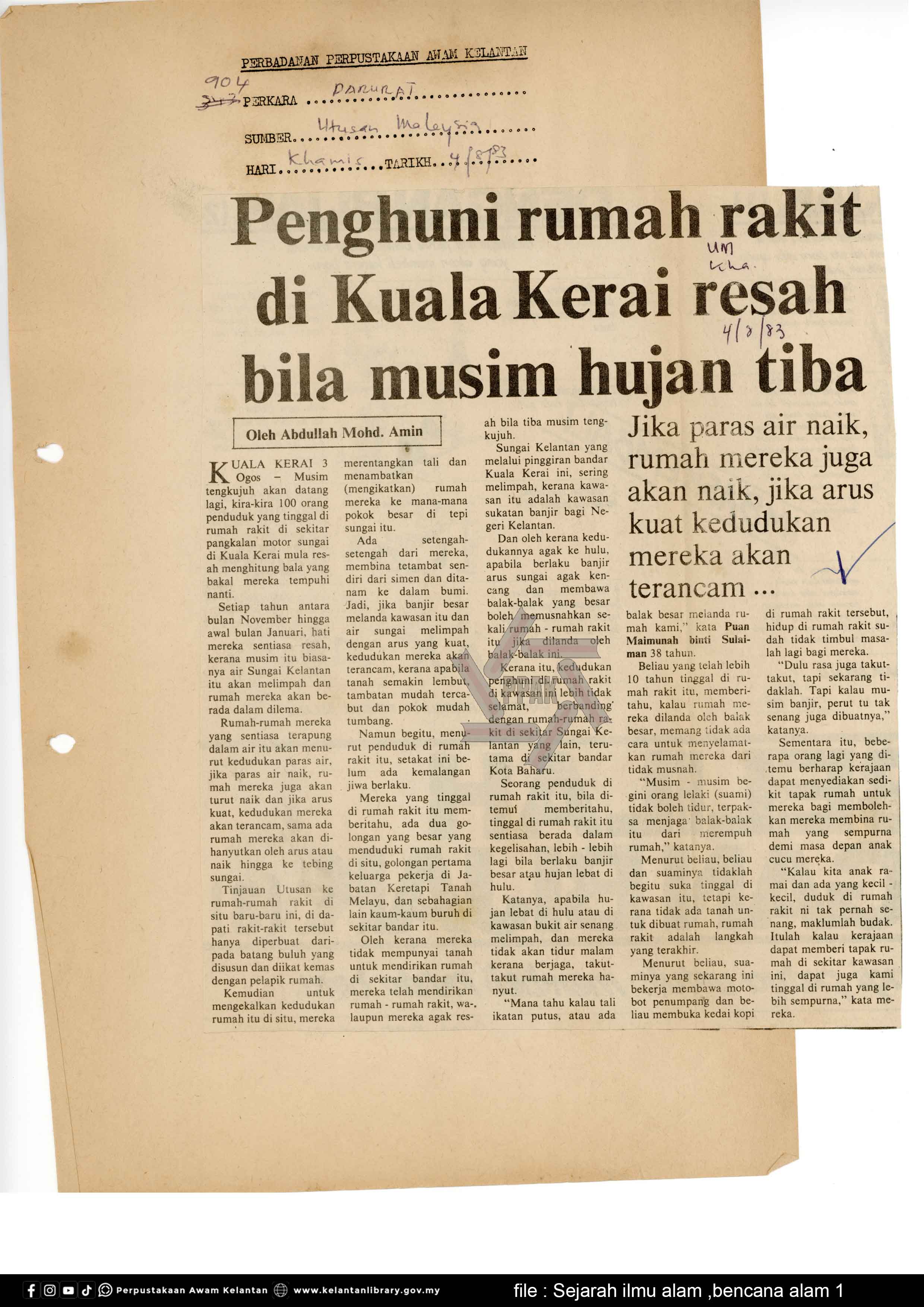| BENCANA ALAM : Penghuni rumah rakit di kuala kerai resah bila musim hujan tiba |