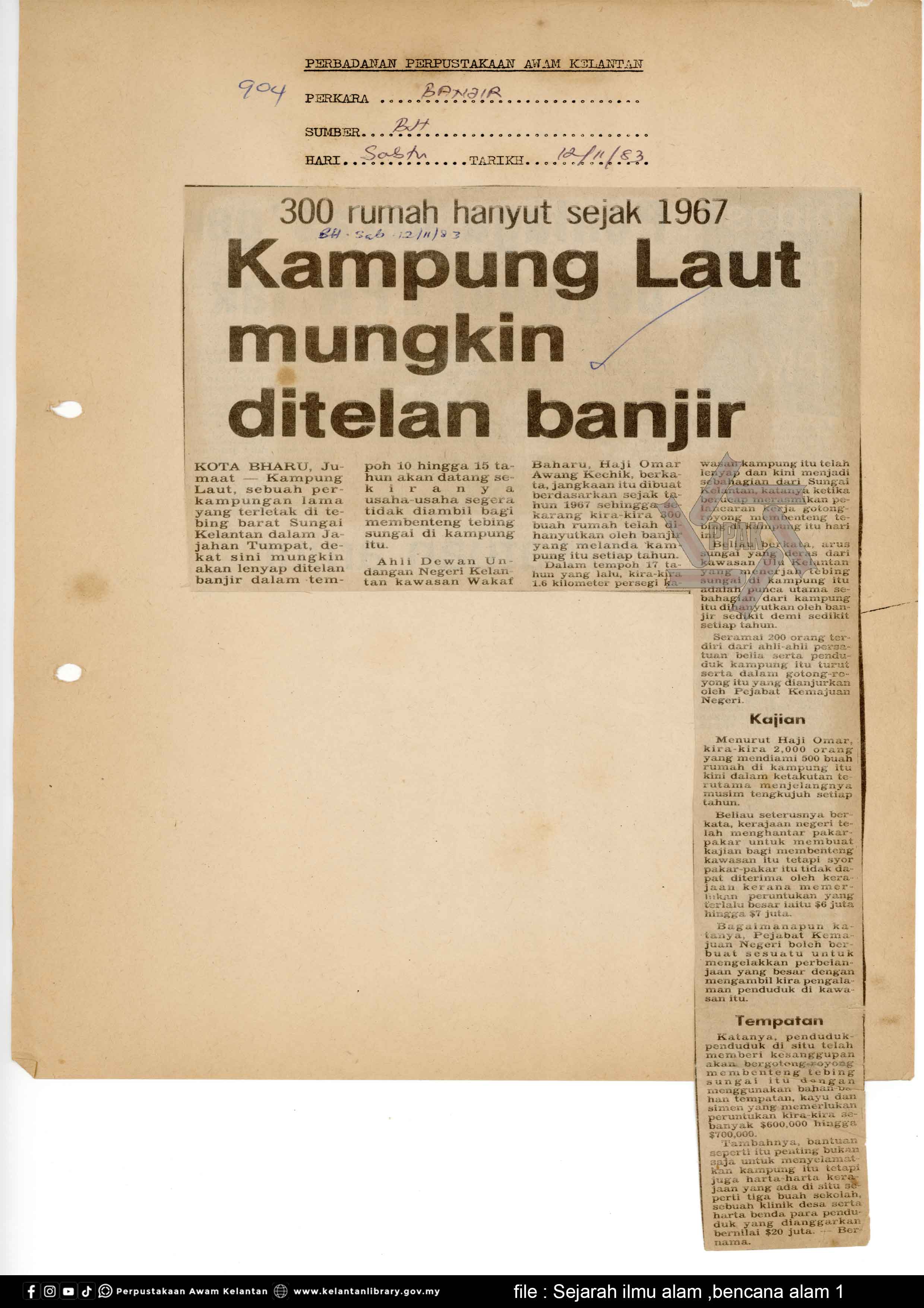 | BENCANA ALAM : Kampung Laut mungkin ditelan banjir |